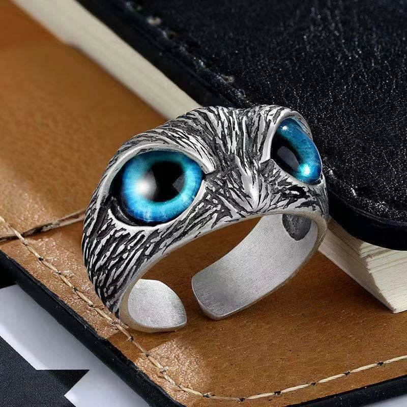 HomeNative Americans JewelryRefreshing 925 Silver Blue Crystal Eyes Owl Ring
