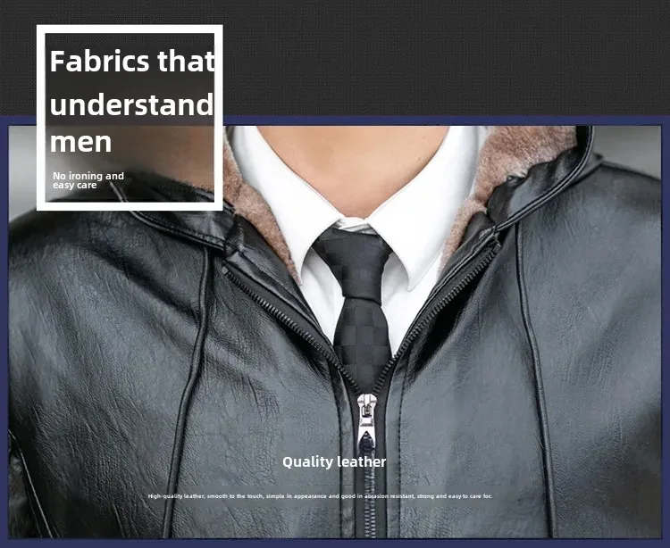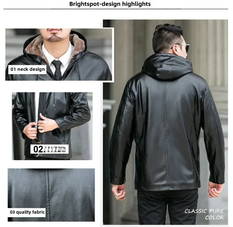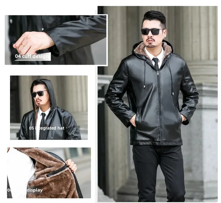 Winter Hooded Fleece-Lined Lamb Jacket With Leather