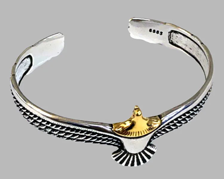 Silver Eagle Bracelets 925 Sterling Silver Creative Feather Bird Opening Bracelets